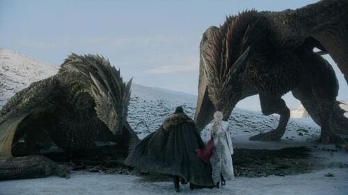 그녀의 용 드로곤이 도시 전체를 불태워버렸고, 이로 인해 세르세이와 제이미 라니스터는 무너지는 성 아래에서 사망합니다.